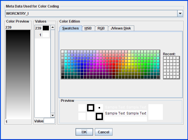 6. Click OK. The meta data is presented in the map using the new color scheme.