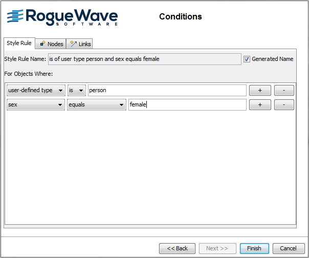 The Conditions page of the Create Style Rule Wizard displays.