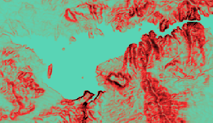 When the interactor is used, it creates an IlvTiledRasterDataSource. This data source is based on an IlvComputedRasterReader that computes a single image from the altitude data. The computation of gradient values is made through the implementation of IlvImageComputation by the interactor.