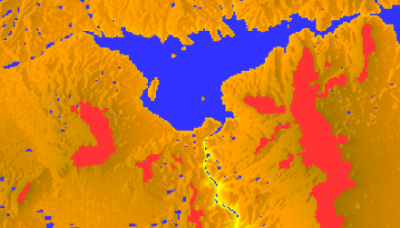 When the interactor is used, it creates an IlvTiledRasterDataSource. This data source is based on an IlvComputedRasterReader that computes a single image from the altitude data. The computation of status values is made through the implementation of IlvImageComputation by the interactor.