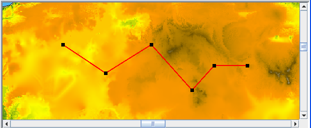 IlvTerrainCut. This object is a standard polyline that allows control of a bean (the Altitude Chart) whenever its points are moved.