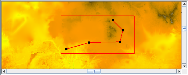 IlvMapTerrainFlyThrough. This object is a standard polyline that allows control of a bean (the Fly Through) whenever its points are moved.