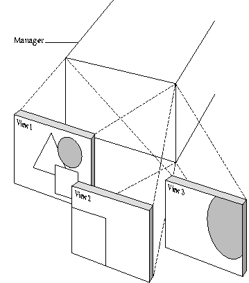 Attaching multiple views to a manager allows your program to display graphic objects simultaneously in various configurations.