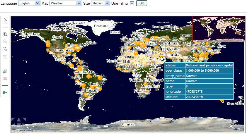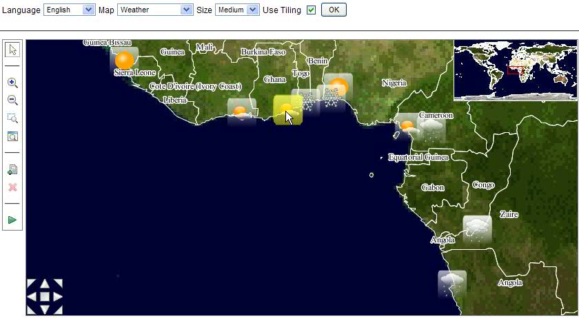 The overview, zoom tool, pan tool, and interactors common component are not compatible with this view, but are provided through the use of Google Maps Controls. You can select the controls to display with the