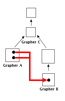 IlvGrapher can be nested and can be collapsed or expanded. Nested graphers allow you to create applications that define graphs that contain subgraphs with links crossing the graph boundaries (intergraph links). See