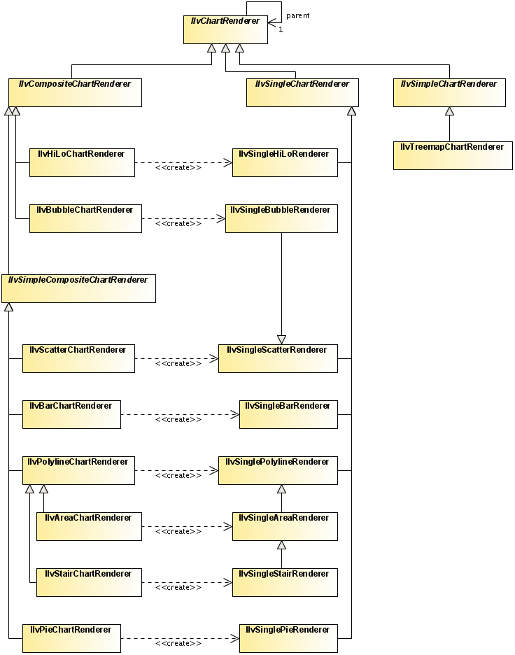 IlvCompositeChartRenderer abstract class, and the single renderer classes inherit from the