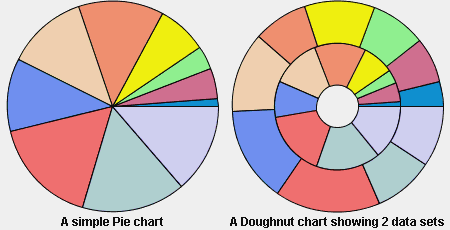 A Pie chart can be drawn with a hole in its center. This type of chart is called a doughnut chart. The hole size is expressed as a percentage of the available space that the hole will occupy. Pie renderers are usually added to pie charts but can also be used with other chart type (Cartesian for example).