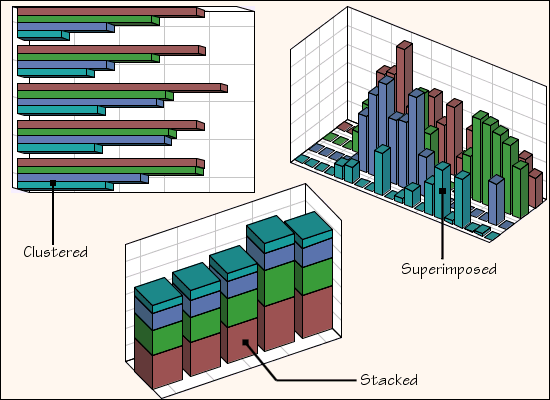 The following 3-D bar charts representations are supported: