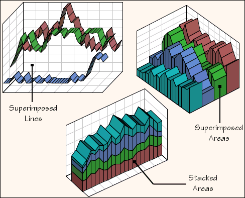 3-D Lines and Areas shows some examples of line and area charts.