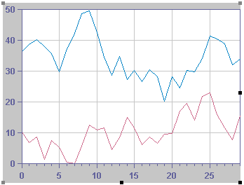 At this point, an IlvChart bean instance is created and displayed inside the frame (Note that a default data model is created at design time).