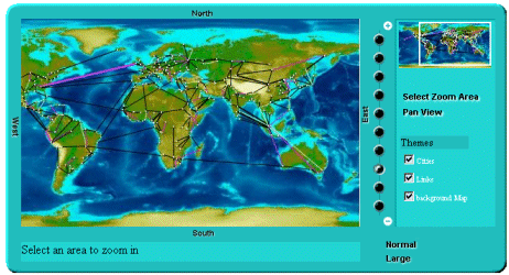 *An Rogue Wave® JViews component that can read an XML file describing a set of interconnected cities and display them on top of a map as shown in the picture above.
