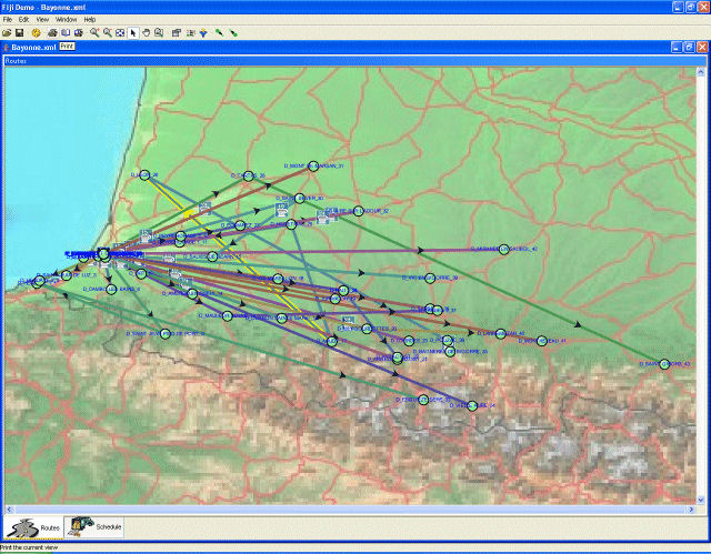 Company assets such as trucks, warehouses, and customer sites are displayed on maps to make the supply chain more readily appreciated. Warehouses can be displayed as symbols upon maps and routes can be displayed as links or as precise road-routes.