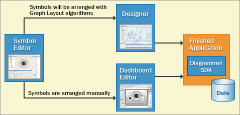 A point-and-click editor for easily specifying most aspects of a diagram. It is well-suited for defining the look and feel of applications that must automatically create a diagram—such as a business process, a network typology, a workflow, a data flow, or entity-relational diagrams—from a data source.