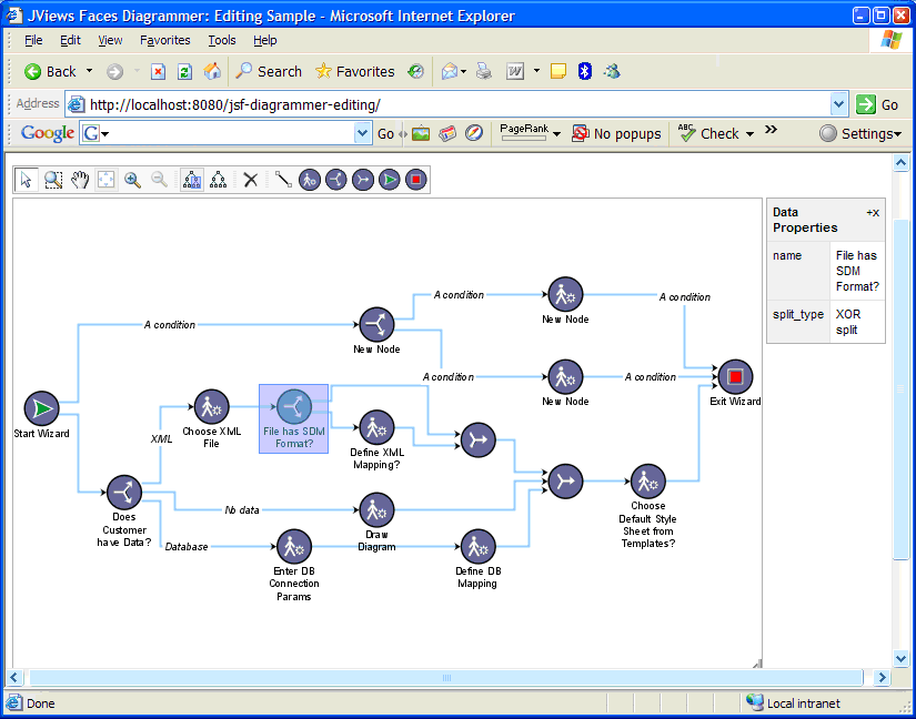 The following image shows the same business process diagram deployed as a Web/Ajax interface: