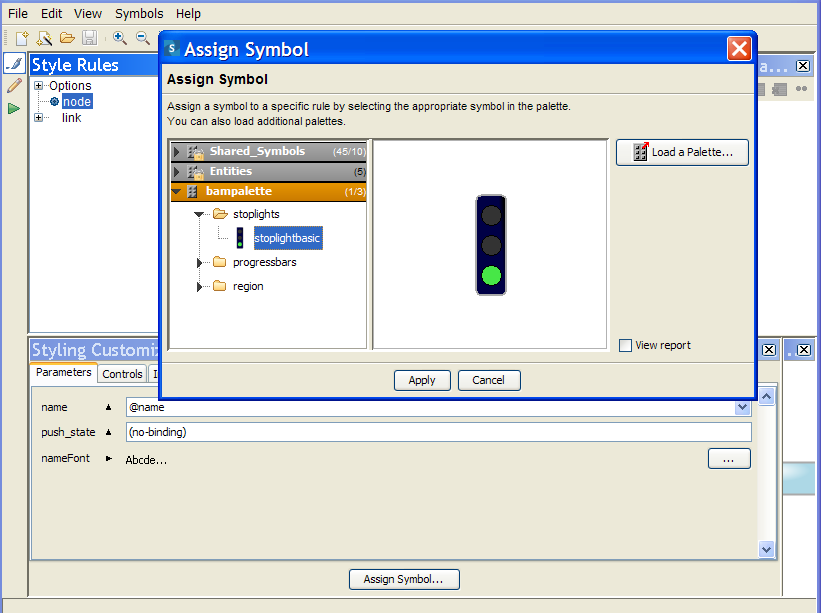 Creating the stoplight symbol integrated as a node image in a diagram.