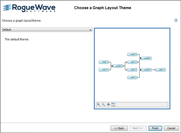 A graph layout theme applies styling to a graph layout to configure the way nodes and links are interconnected and arranged. A layout theme consists of a partial style sheet. It is a convenient way of applying a precustomized layout that you want to reuse in different projects.