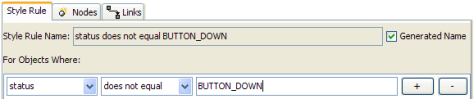 12. Select the status does not equal BUTTON_DOWN rule in the Style Rules pane.