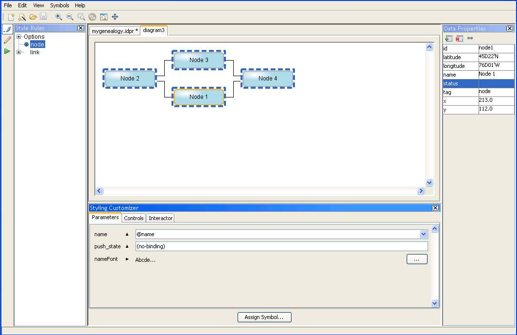push_state internal parameter to a custom data property. You then use style rules to make interactive changes to your diagram as the data property changes value. For example, you can change the symbol used to represent a node when it is clicked.