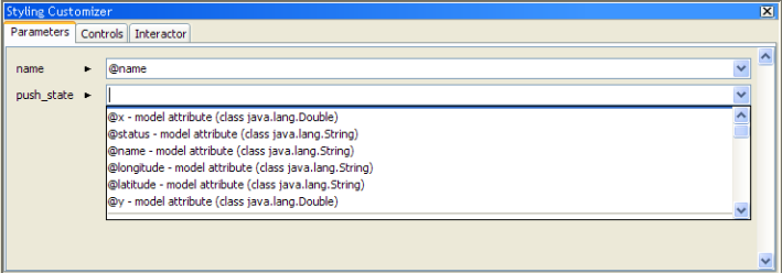 9. Right-click the push_state field in the Parameters tab of the Styling Customizer.