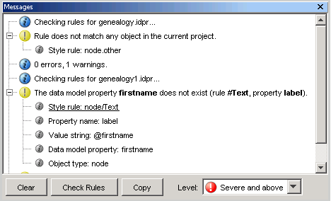 You can filter the list according to the severity level as shown. By default, only messages of level Severe and above are shown.