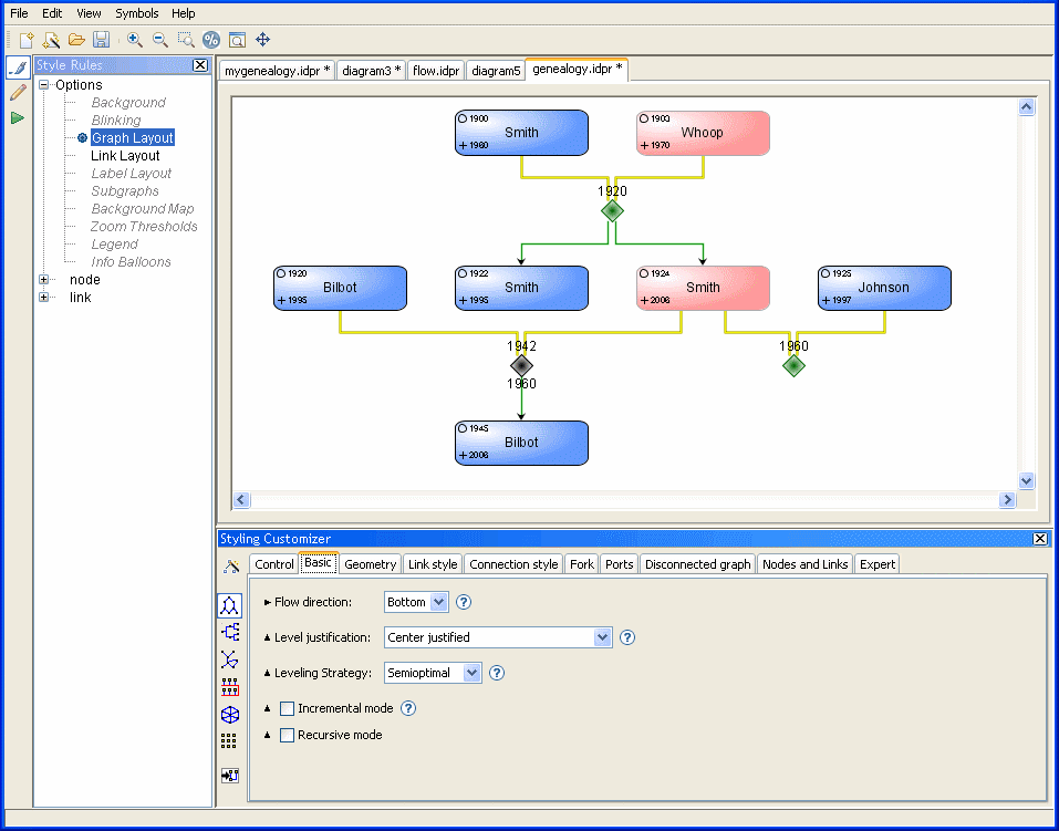 The Basic tab in the Styling Customizer contains the parameters of the selected graph layout that you are most likely to want to change.