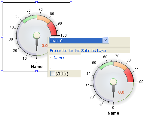 The Layer Containing the Selected Objects pane, at the bottom of the Layers window, shows the layer in which the object currently selected in the dashboard diagram is stored.