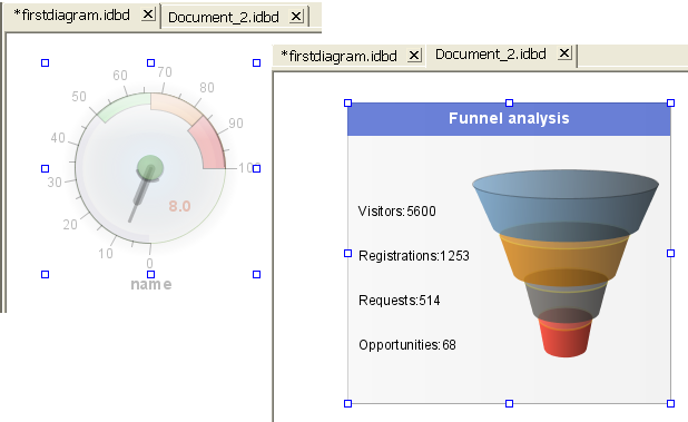 The Dashboard Editor lets you edit dashboard diagrams through a multidocument interface. This means you can add symbols from a single palette to multiple dashboard documents simultaneously.