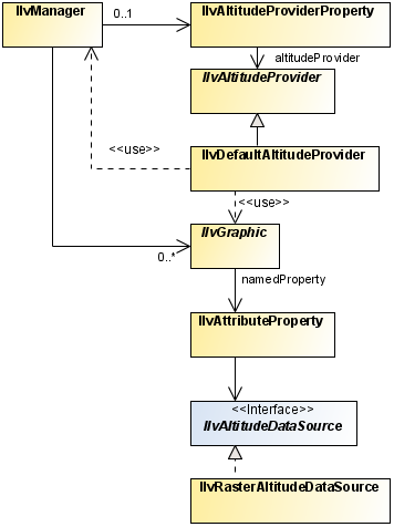 2. To integrate another Digital Elevation Model, which provides the graphic objects with an IlvAltitudeDataSource property, see To retrieve the altitude attached to a graphic object below.