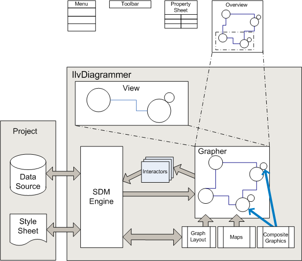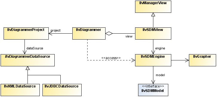 IlvDiagrammer class is a façade that gives easy access to the following underlying facilities: