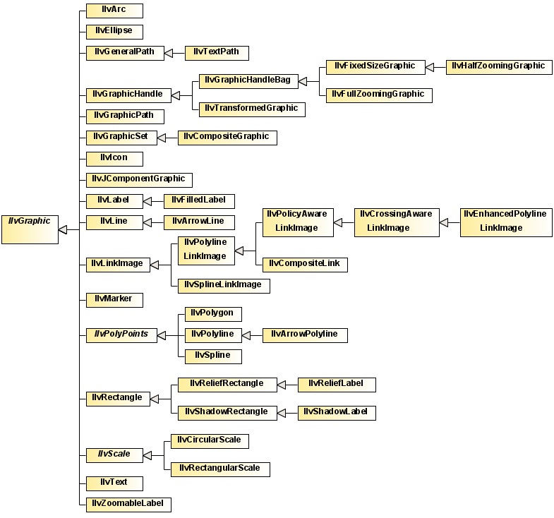 Rogue Wave® JViews Framework provides a wide range of predefined graphic objects to create a sophisticated application with minimum coding. These objects/classes are illustrated in the following figure.