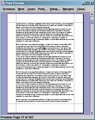 flow.add("The document model provides a structure to define a multiple-page document to be printed. The document model allows you to concentrate your efforts on creating your printable document without worrying about how the document is previewed and printed. The printing framework previews and prints the document for you.");
