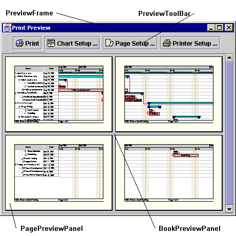 NOTE Some Rogue Wave® JViews packages provide subclasses of the IlvPrintableDocument class that manage the pages for you. For example, Rogue Wave JViews Gantt provides a subclass that can automatically create its pages to display a chart in multiple pages. For more information see the Rogue Wave JViews Gantt documentation.