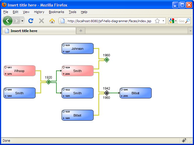 Copy the files genealogy.idpr, genealogy.xml and genealogy.css from <installdir> /jviews-diagrammer/codefragments\jsf-hello-diagrammer\webpages to the WebContent folder of your project. The location of this example might change depending on the version of your JViews product.