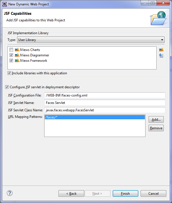 Note that the JViews Framework library used for basic JViews JSF application is already there.