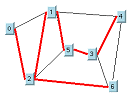 A minimal subgraph, defined as follows: A spanning tree S of a flat graph G is a subgraph of G containing all the nodes of the graph and whose links are a subset of the links of the graph. The number of links of G that are not present in S must be the minimum number for which there are no cycles in S. The spanning tree is shown by the red links in the following illustration.