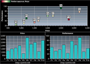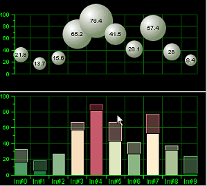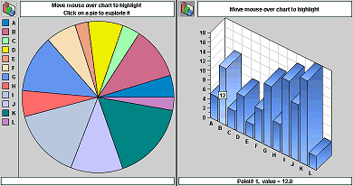 This sample shows a data set rendered as two different graphical representations (as a pie chart and a bar chart). These charts react to mouse movements by highlighting the data point over which the mouse cursor is placed.