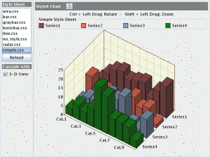 - Many graphical parameters can be set through CSS or through setter methods in the API. CSS - Cascading Style Sheets - allows to develop the look of a chart without Java coding, and to store a complete chart look as a plain file. The sample Chart CSS Styling shows CSS styling; whereas the sample Logarithmic Scales shows how to perform basic customizations through the API. For a comparison between these two approaches, see Next Steps After the Designer > Styling: CSS versus API section in Using the designer documentation.