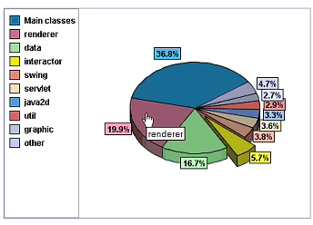 This sample shows how to use image maps with the JavaServer Faces chart view component. A managed bean loads data from an XML file and fills a pie chart displayed by the JavaServer Faces Chart view component. An image map is displayed on top of the chart image to display tooltips and to show the reference manual of the selected package.