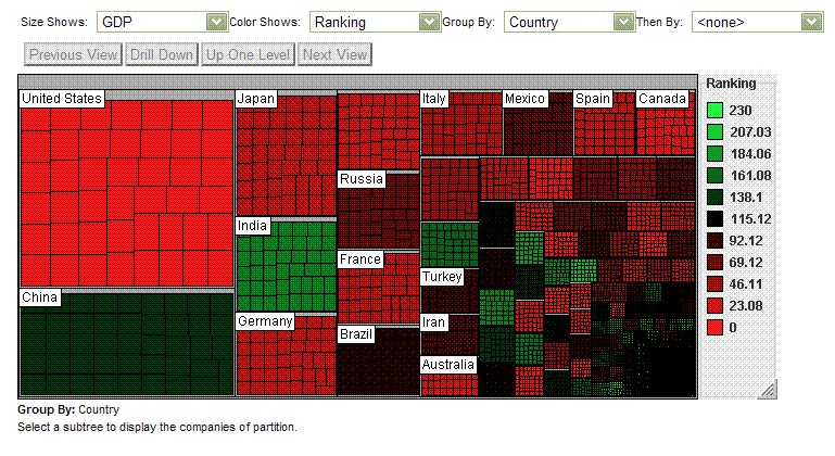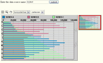 This sample shows how to use treemap charts for navigation in a thin-client environment, with the JSF chart component. A servlet loads a tree-structured model and generates an image of a treemap chart and its corresponding client-side image map.