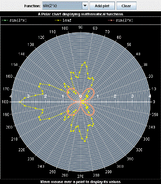 This sample shows how a polar chart can be used to display mathematical functions using the JViews Charts Faces component.