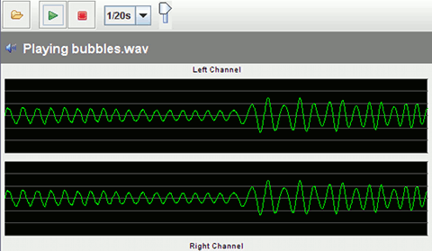This sample shows how to handle real-time audio data. It is a simple sound player based on the Java Sound Technology. Audio data is read from an audio input stream and displayed in two charts, one for each channel.