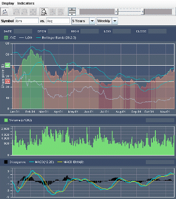 This sample allows you to display the stock quotes of one or several companies, as well as several technical market indicators. Two kinds of charts are used to display the stock data: