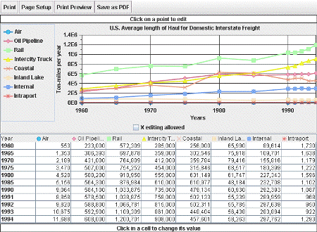 This sample loads data stored in a Swing TableModel and displays it in a chart as polylines. It also shows how to print the chart to PDF.