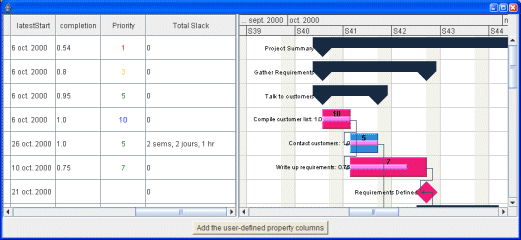 This example shows how to create dynamic columns from user-defined properties, when your Gantt data-model implementation is an in-memory default data model.