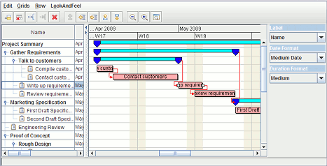 This sample shows a simple project scheduling application displayed as an activity-oriented Gantt Chart.