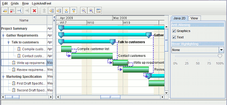 This sample presents a Gantt project viewer developed with JViews Gantt and JViews Diagrammer components.