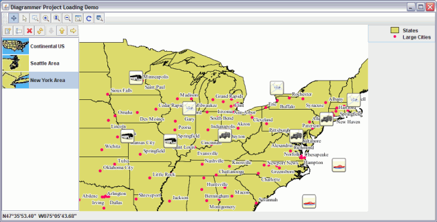 This sample shows how to use JViews Framework objects on top of JViews Maps.