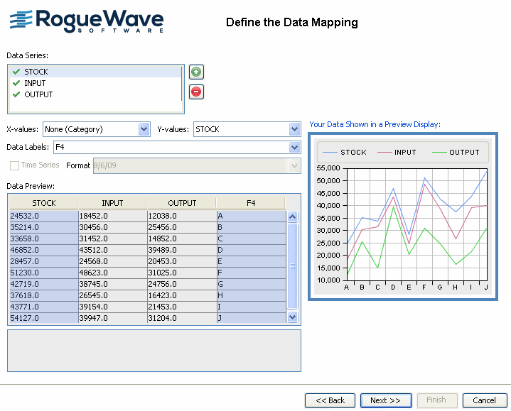 The data mapping is complete when all the columns containing the data that you want to view are mapped to data series.