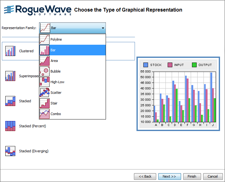 3. From the Representation Family list, select the option Bar.