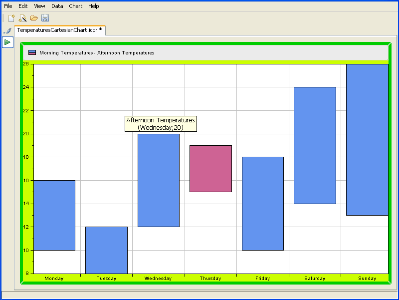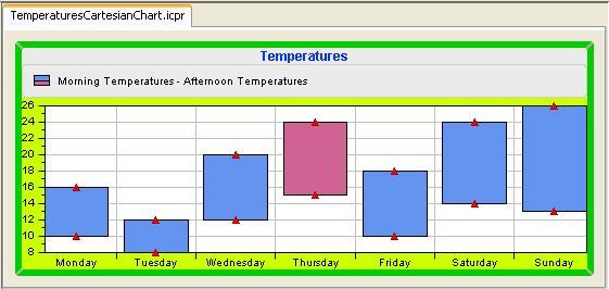 1. Open the project TemperaturesCartesianChart.icpr you saved in the Getting Started. This is how the basic Cartesian chart appears in the Designer: